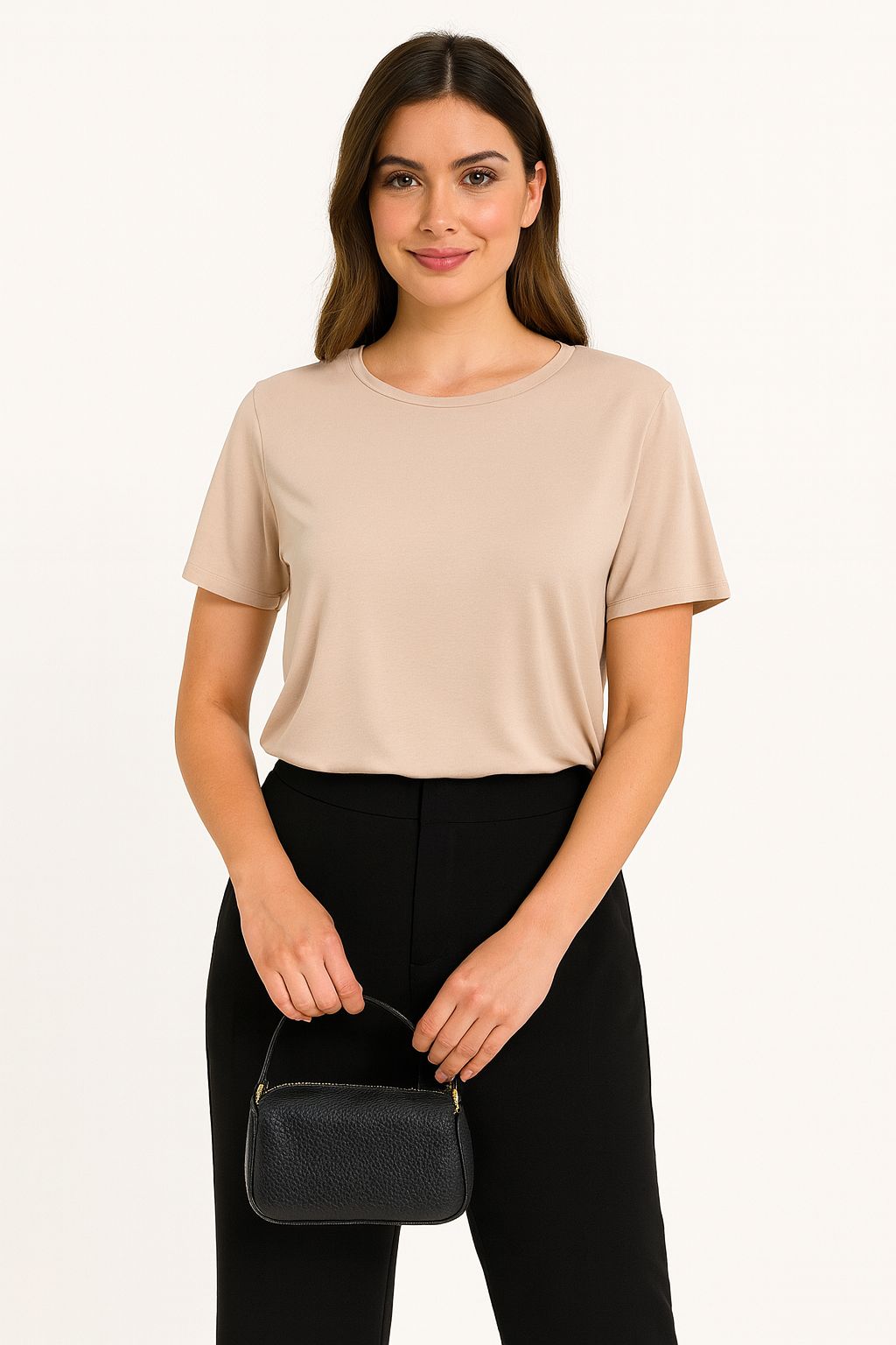 T-shirt oversize in tessuto leggero estivo, dal design semplice e versatile. Perfetta da indossare ogni giorno per un look comodo e moderno, ideale sia con un jeans casual che con un pantalone elegante. Il taglio morbido valorizza ogni fisicità e garantisce libertà di movimento. Un capo essenziale da avere sempre nell’armadio.