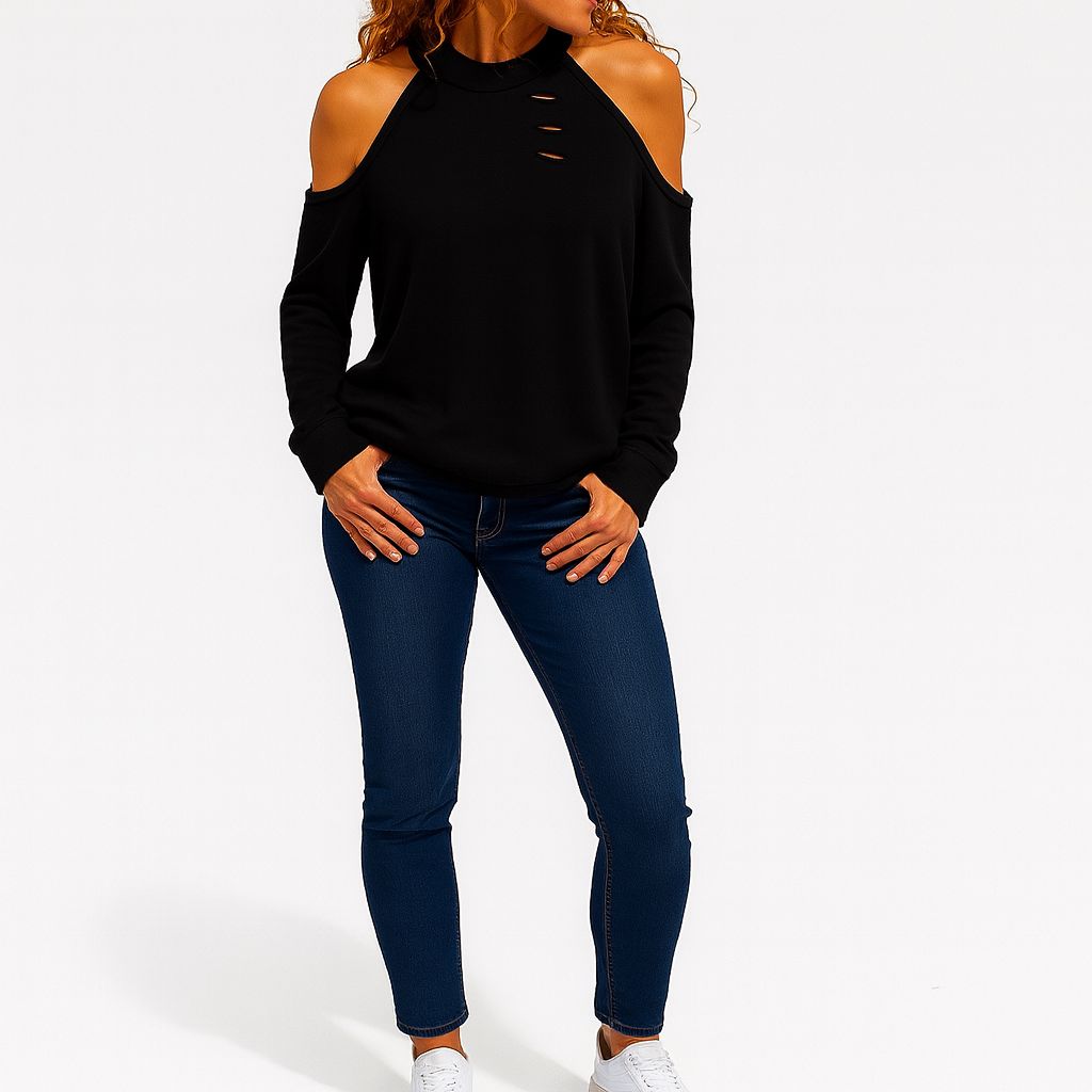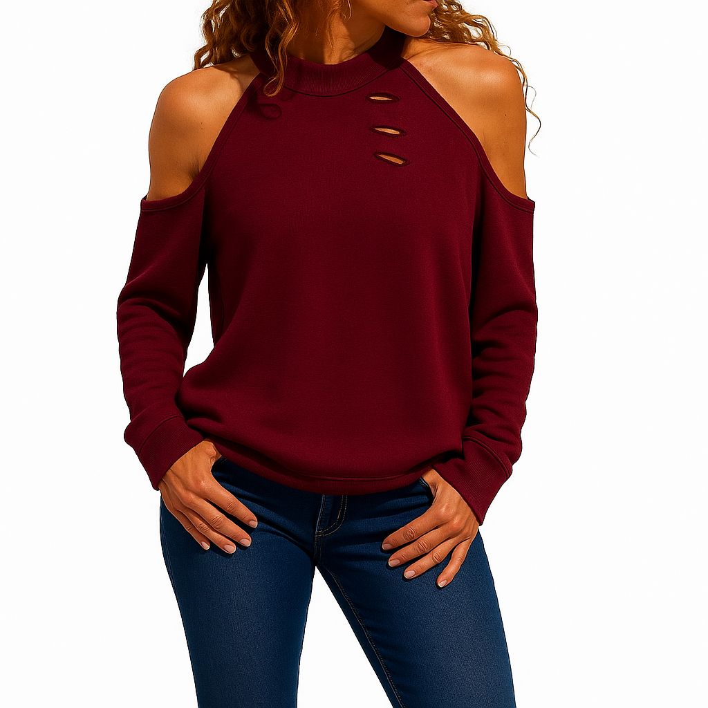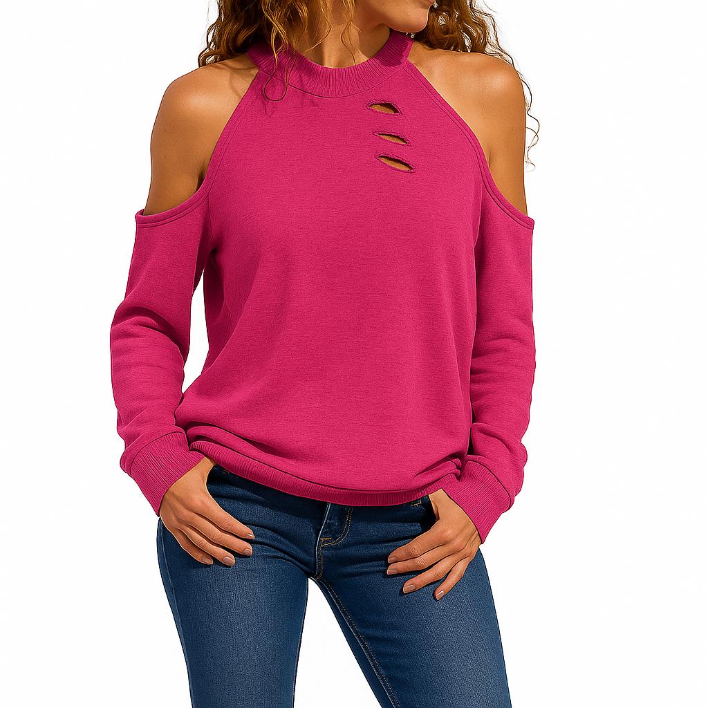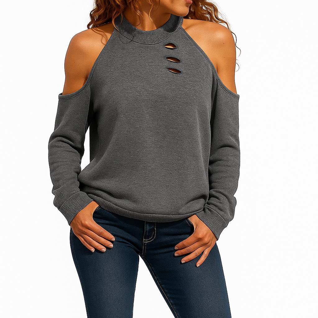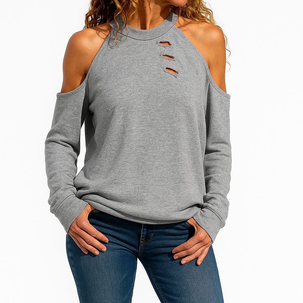 Felpina con Spalle Scoperte e Dettagli Strappati