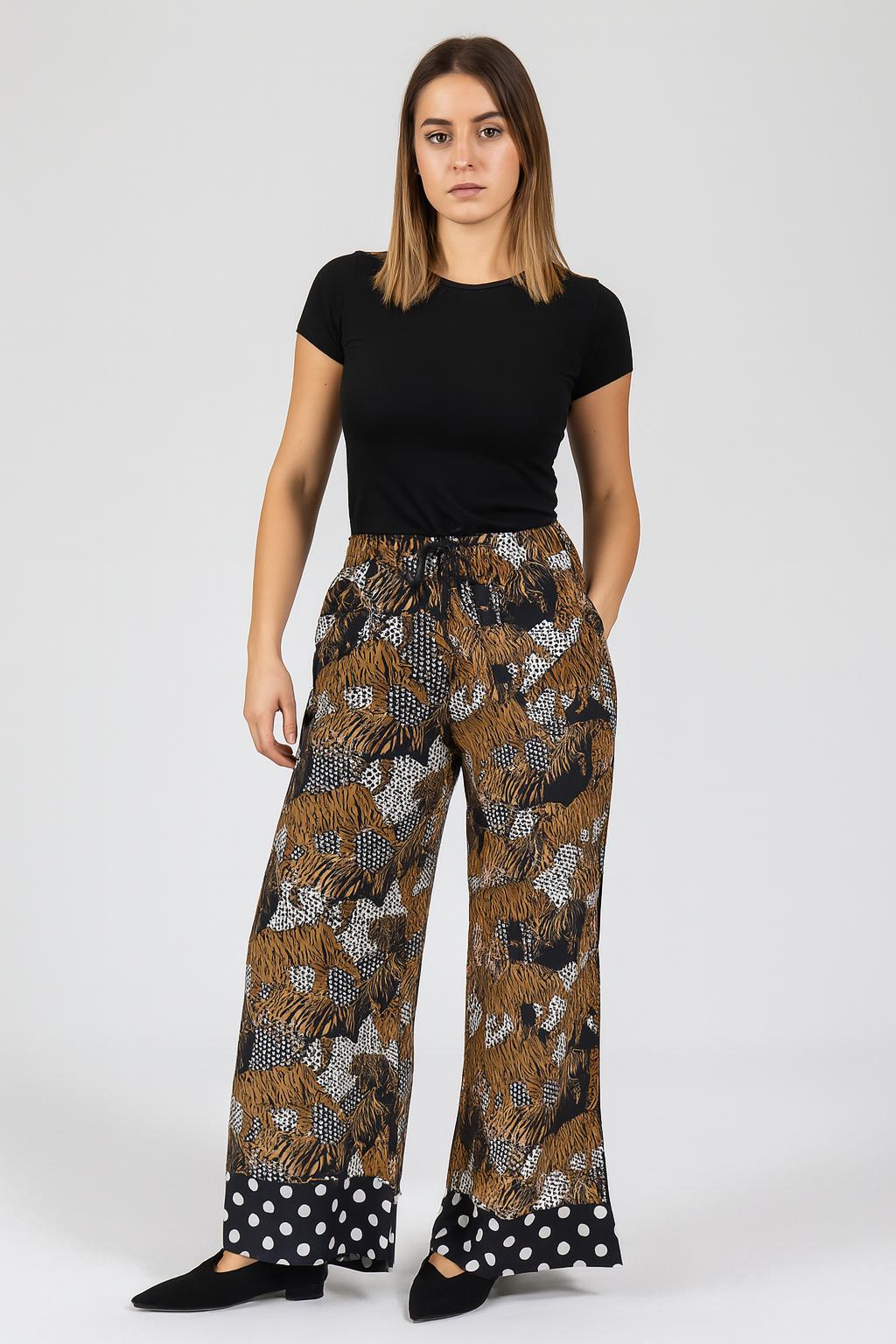 3. Grazie ai vostri acquisti riusciamo a tutelare la nostra occupazione e il nostro stipendio. - Pantalone ampio e leggero, perfetto per la stagione primavera-estate. La fantasia particolare lo rende unico e versatile: puoi abbinarlo con una semplice t-shirt o una camicetta elegante per adattarlo dal giorno alla sera. Fresco e comodo, è il capo ideale per chi cerca stile senza rinunciare al comfort.