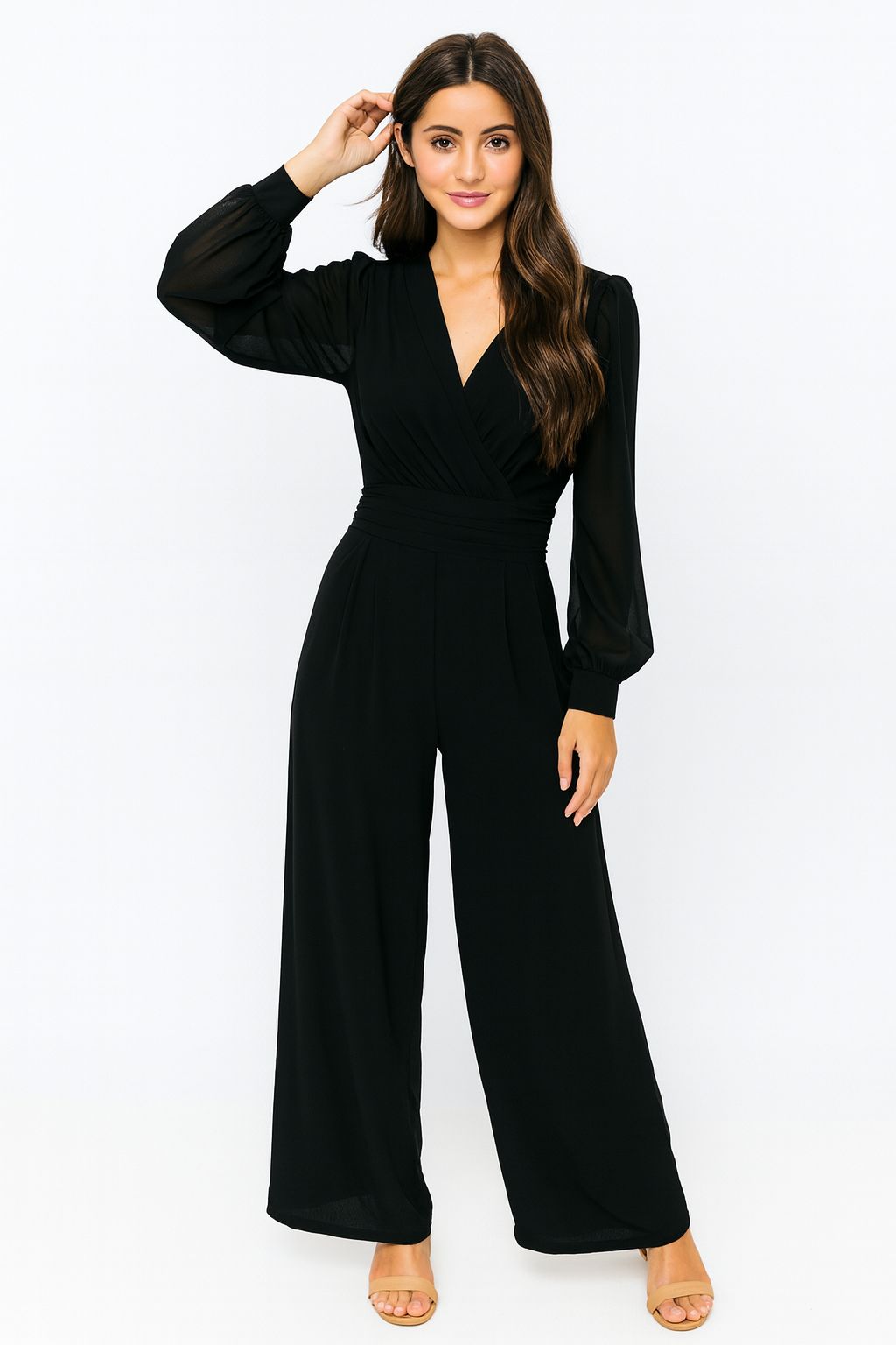 - Questa elegante tuta nera è il capo perfetto per chi desidera uno stile raffinato e senza tempo. Grazie al suo taglio morbido e ai pantaloni ampi, slancia la figura ed è ideale per sentirsi comode ma sempre chic. La caratteristica che la rende unica è la fusciacca in vita, e le maniche a palloncino di jorjett, che sottolinea le forme e dona un tocco di femminilità in più.