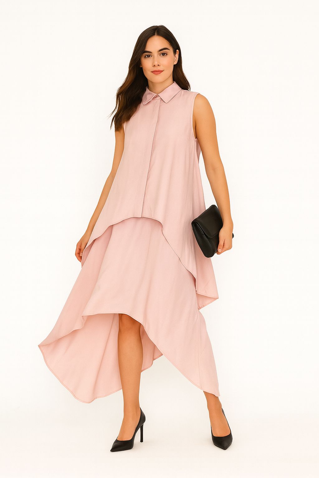 - Questo vestito è un capo unico e raffinato, realizzato in tessuto leggero dal taglio asimmetrico a doppio strato: più corto davanti e più lungo dietro, per un effetto dinamico e sofisticato. Il colletto dona un tocco di eleganza minimal, mentre la linea morbida lo rende comodo e adatto a diverse fisicità. È perfetto per chi vuole distinguersi con stile senza rinunciare alla praticità. Si indossa facilmente con tacchi e una borsa a mano per un’occasione speciale, una cerimonia o una serata chic, ma può essere interpretato anche in chiave più casual con accessori semplici e discreti. Un abito versatile che valorizza ogni momento con grazia ed eleganza.