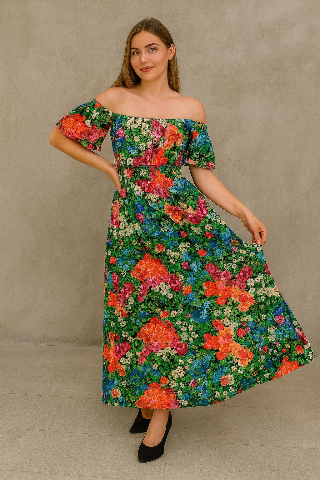 1. Siamo un’azienda giovane.2. Siamo un’azienda tutta italiana.3. Grazie ai vostri acquisti tuteliamo la nostra occupazione e il nostro stipendio.Un abito che profuma d’estate e femminilità: questo vestito lungo floreale con spalle scoperte è pensato per chi ama sentirsi elegante e fresca allo stesso tempo. Il taglio valorizza la silhouette, mentre le maniche corte e la scollatura rendono il look romantico e raffinato.Perché comprarlo?Perché è un capo che dona luminosità e personalità, perfetto per distinguersi con stile. Leggero, comodo e dal design senza tempo, è ideale sia per il giorno che per la sera.Come indossarlo?• Con sandali bassi per una passeggiata o un’occasione casual.• Con tacchi alti per una cerimonia o una serata speciale.• Con accessori color oro o nude per esaltare la fantasia floreale.