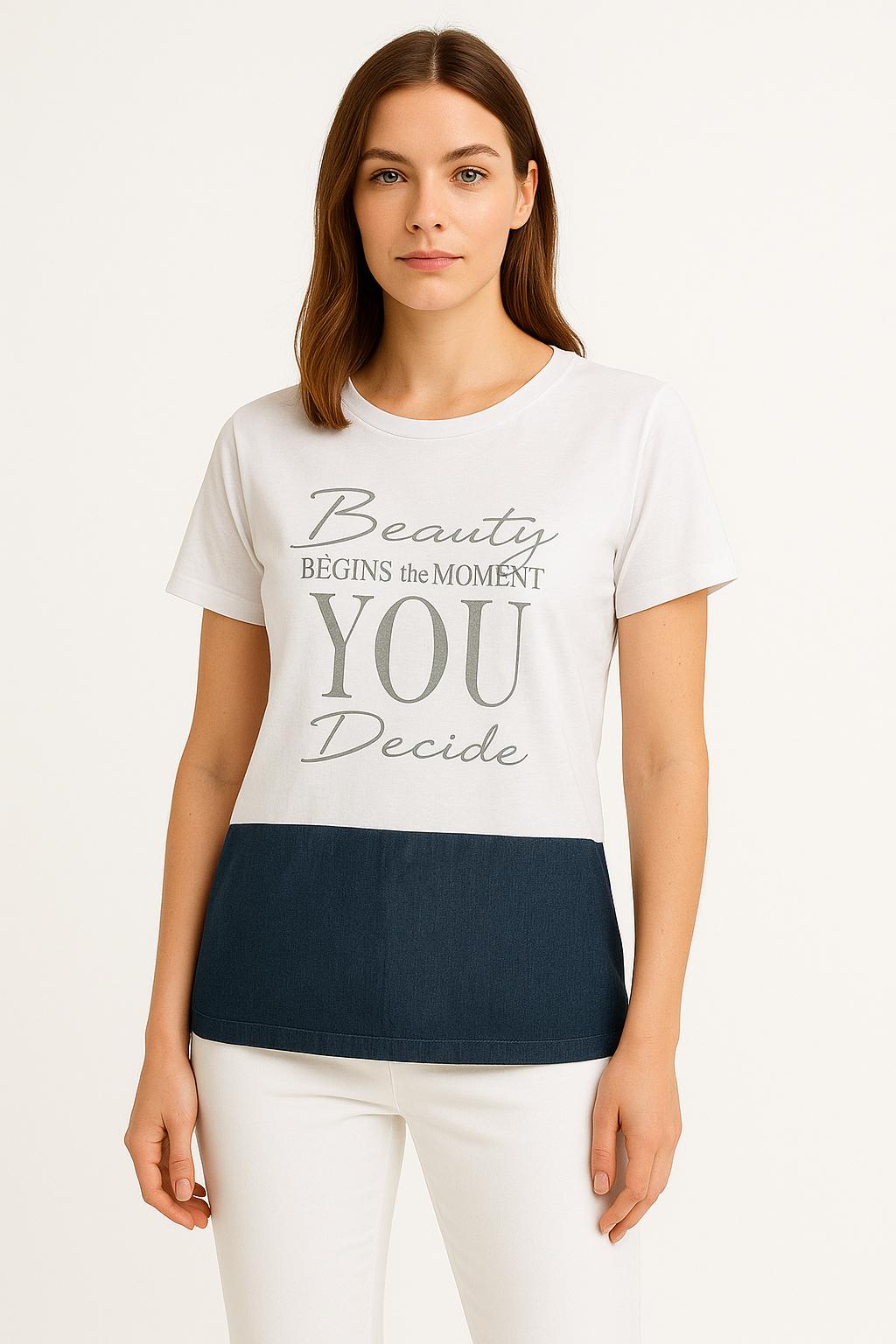 Maglia “Beauty Begins the Moment You Decide”Una t-shirt che parla da sola: semplice, versatile e con un messaggio motivazionale che non passa inosservato. È il capo ideale per chi ama uno stile casual ma curato, perfetto da indossare ogni giorno.✅ Per chi è pensataPer donne dinamiche, giovani di spirito, che vogliono sentirsi belle e sicure in ogni momento.💡 Come indossarla• Con jeans o pantaloni bianchi per un look fresco e minimal.• Con giacca leggera o cardigan per un tocco più chic.• Sempre pronta a valorizzarti, senza sforzo.Grazie!• Siamo un’azienda tutta italiana.• Siamo un team di giovani appassionati.• Con i tuoi acquisti ci aiuti a tutelare la nostra occupazione.