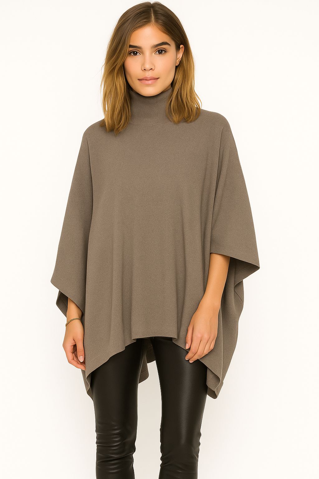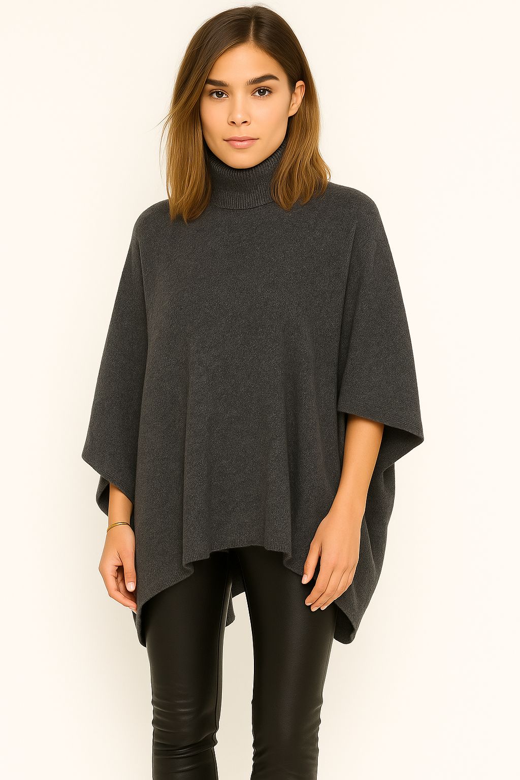 - Il suo design a mantella con maniche larghe e collo alto aggiunge un tocco di classe e modernità, perfetto sia per outfit casual con jeans e leggings, sia per occasioni più eleganti.