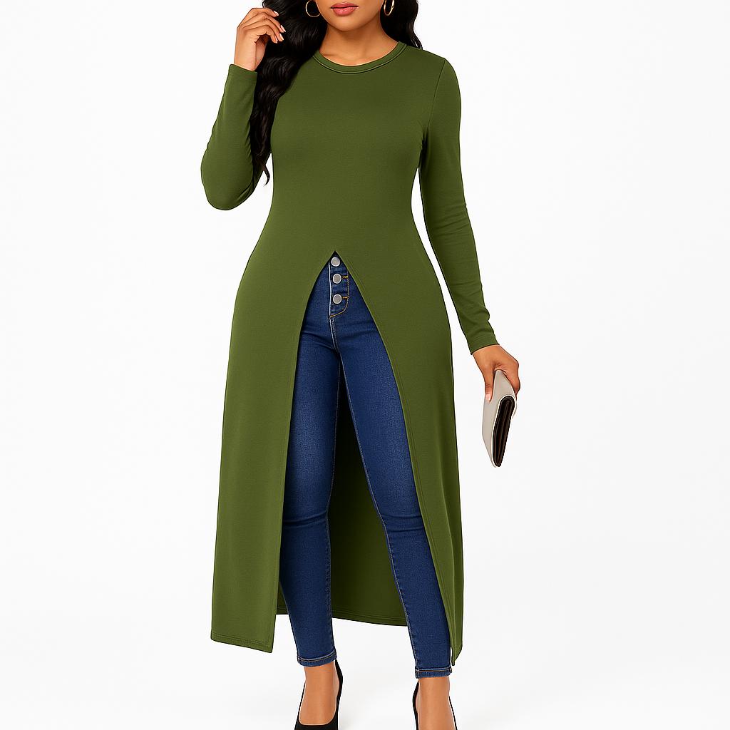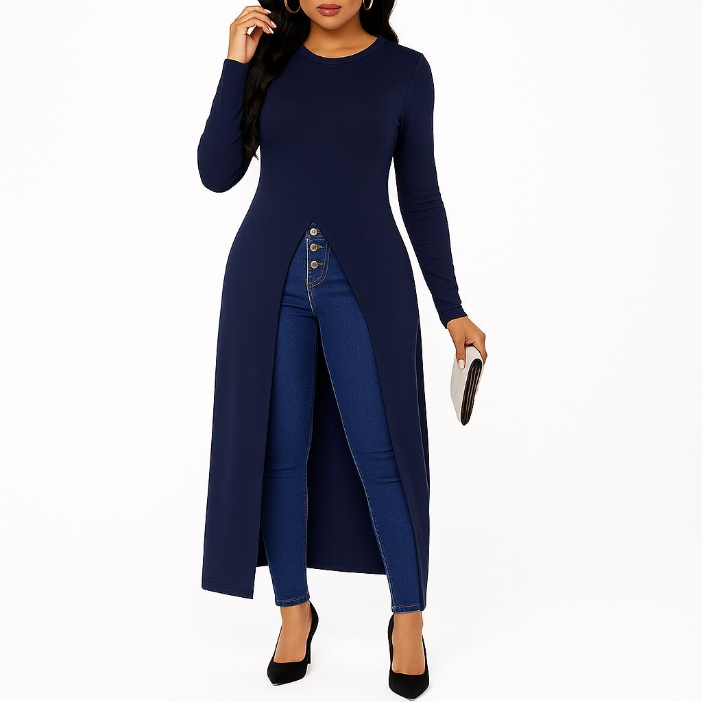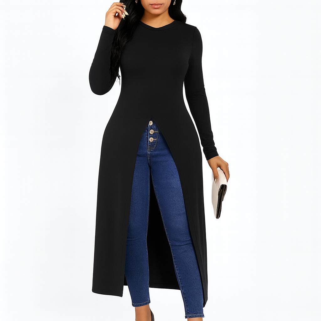 - Un capo grintoso e femminile, pensato per chi ama farsi notare con eleganza. Il tessuto elasticizzato avvolge le forme con comfort e stile, mentre lo spacco frontale dona movimento e carattere all’outfit.