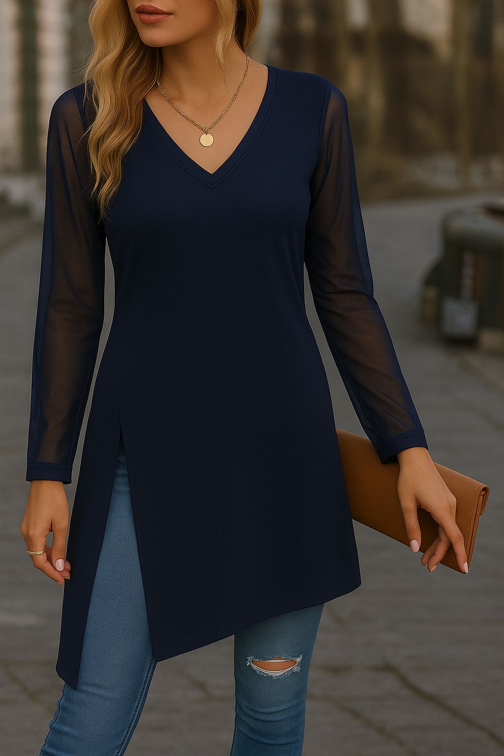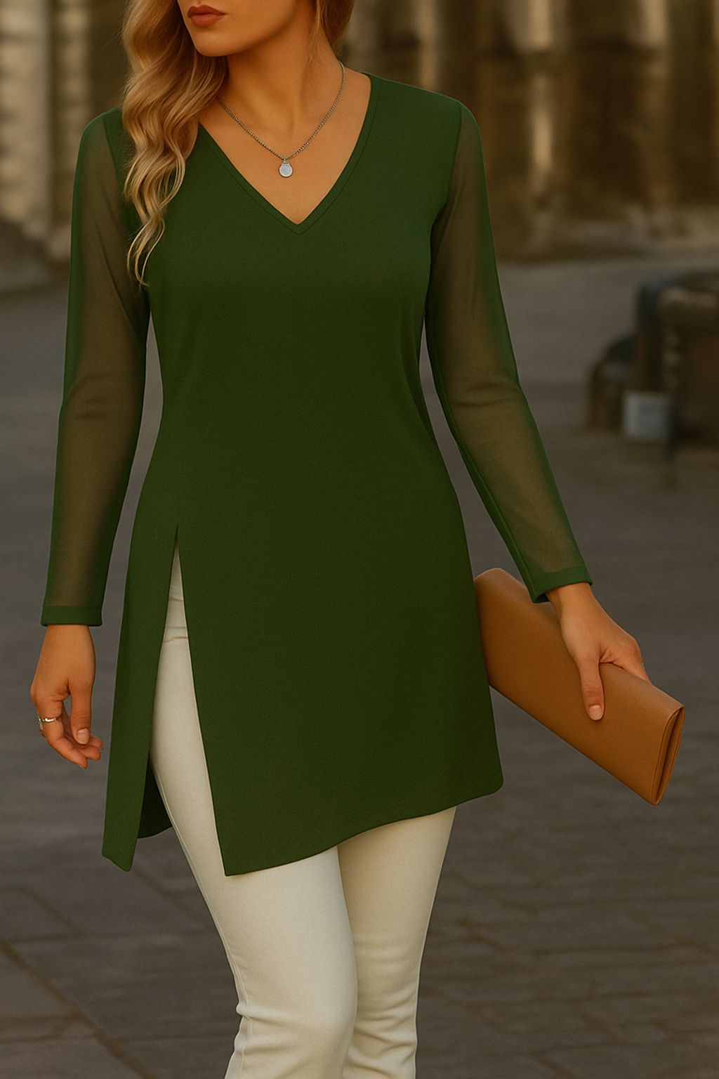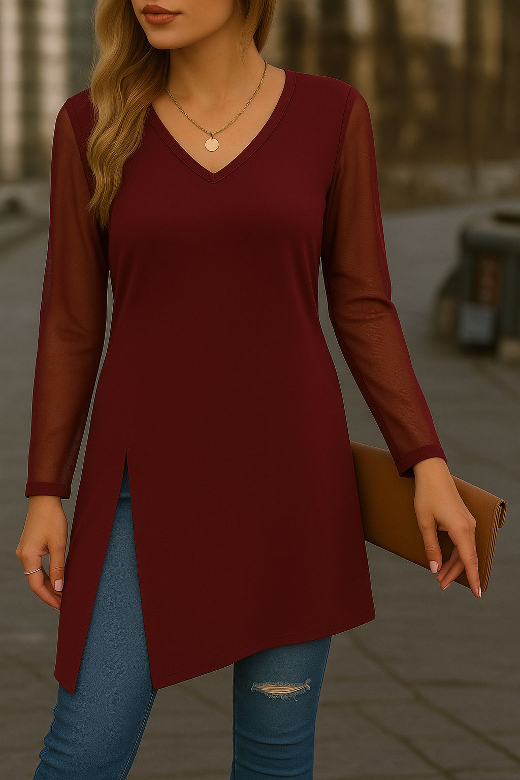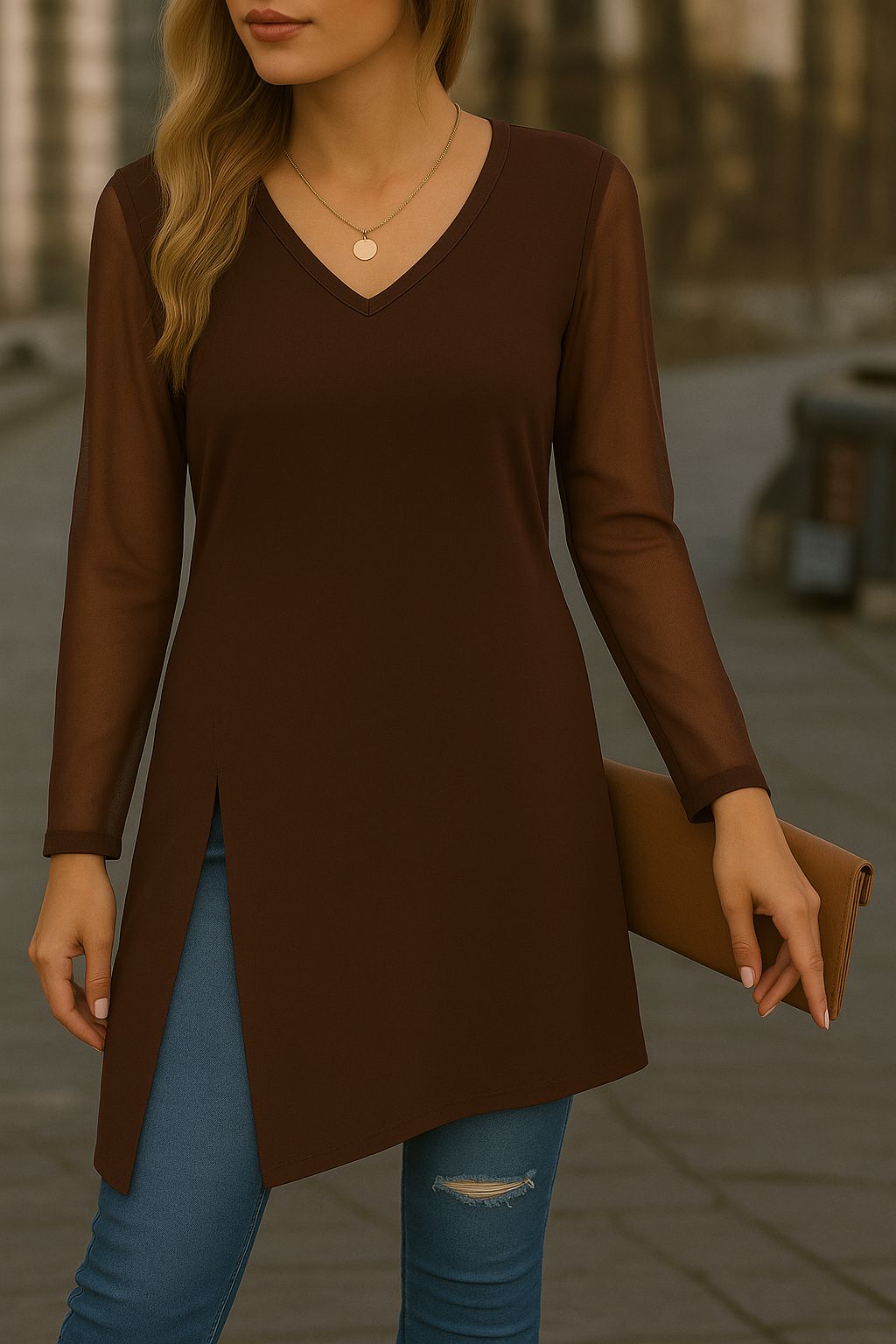 3. Grazie ai vostri acquisti riusciamo a tutelare la nostra occupazione e il nostro stipendio - Blusa color moro a maniche lunghe di velo con scollo a V, realizzata in tessuto leggero e femminile. Il design con spacchi laterali e maniche velate aggiunge un tocco di eleganza e modernità, mantenendo al tempo stesso una linea comoda e versatile. Perfetta sia per un look casual con jeans, sia per un outfit più raffinato con pantaloni o accessori chic.