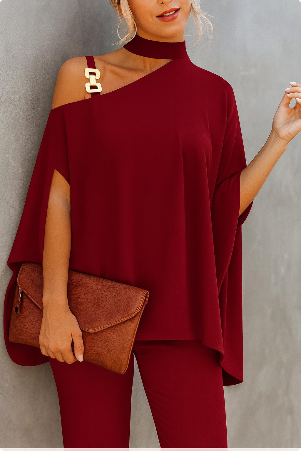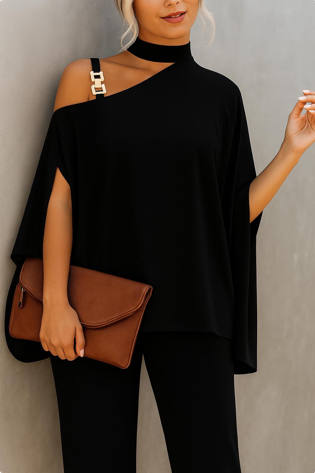 Eleganza e raffinatezza si uniscono, con spallina gioiello dorata. La linea morbida e scivolata valorizza la silhouette con classe, mentre i dettagli curati lo rendono perfetto per cerimonie, eventi o occasioni speciali. Un outfit che trasmette stile e femminilità senza rinunciare al comfort.