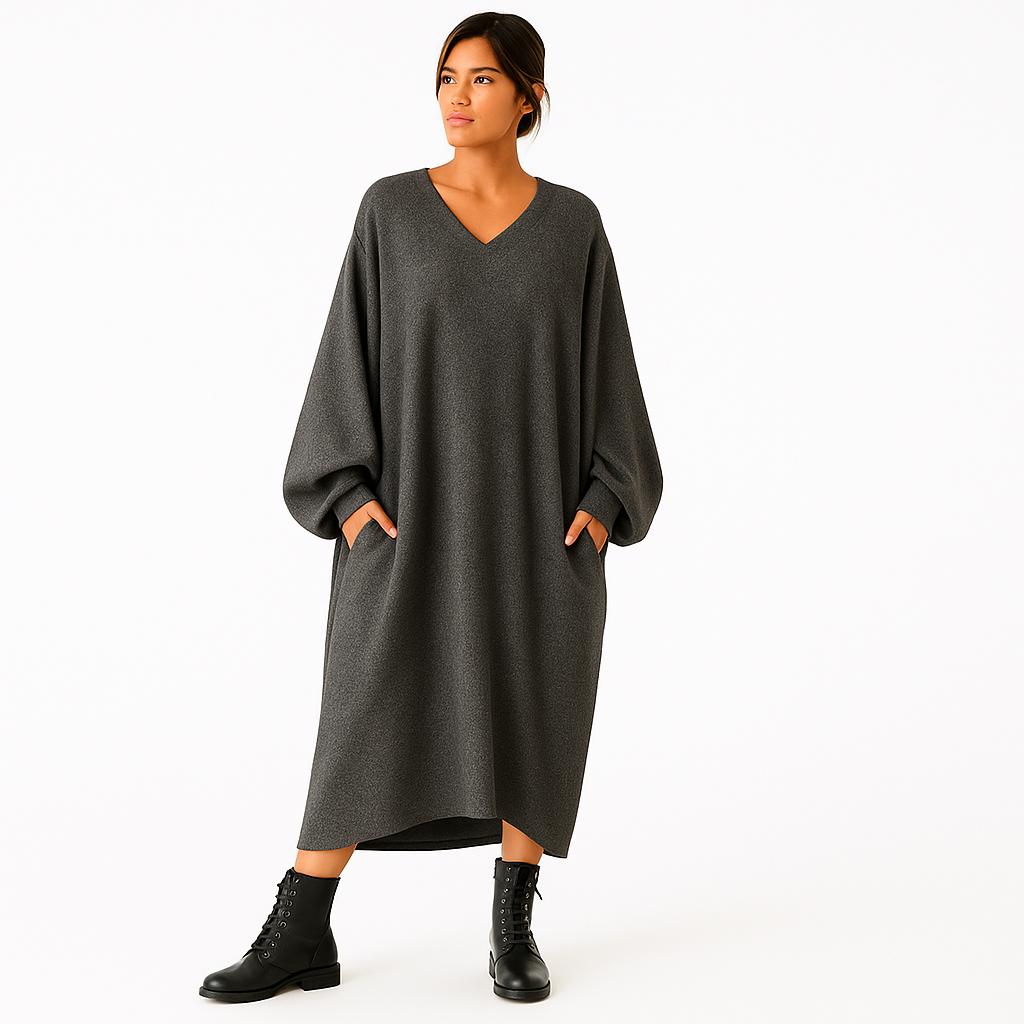 3. Grazie ai vostri acquisti riusciamo a tutelare la nostra occupazione e il nostro stipendio. - Vestito Lungo Morbido con Scollo a V –