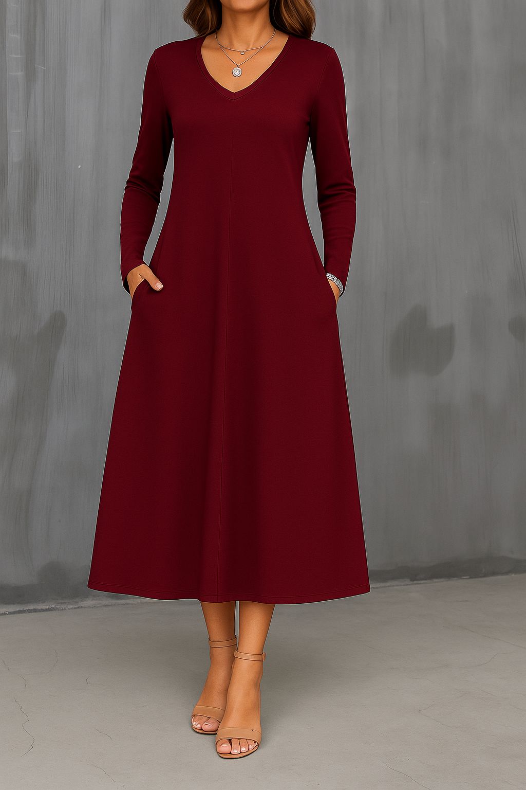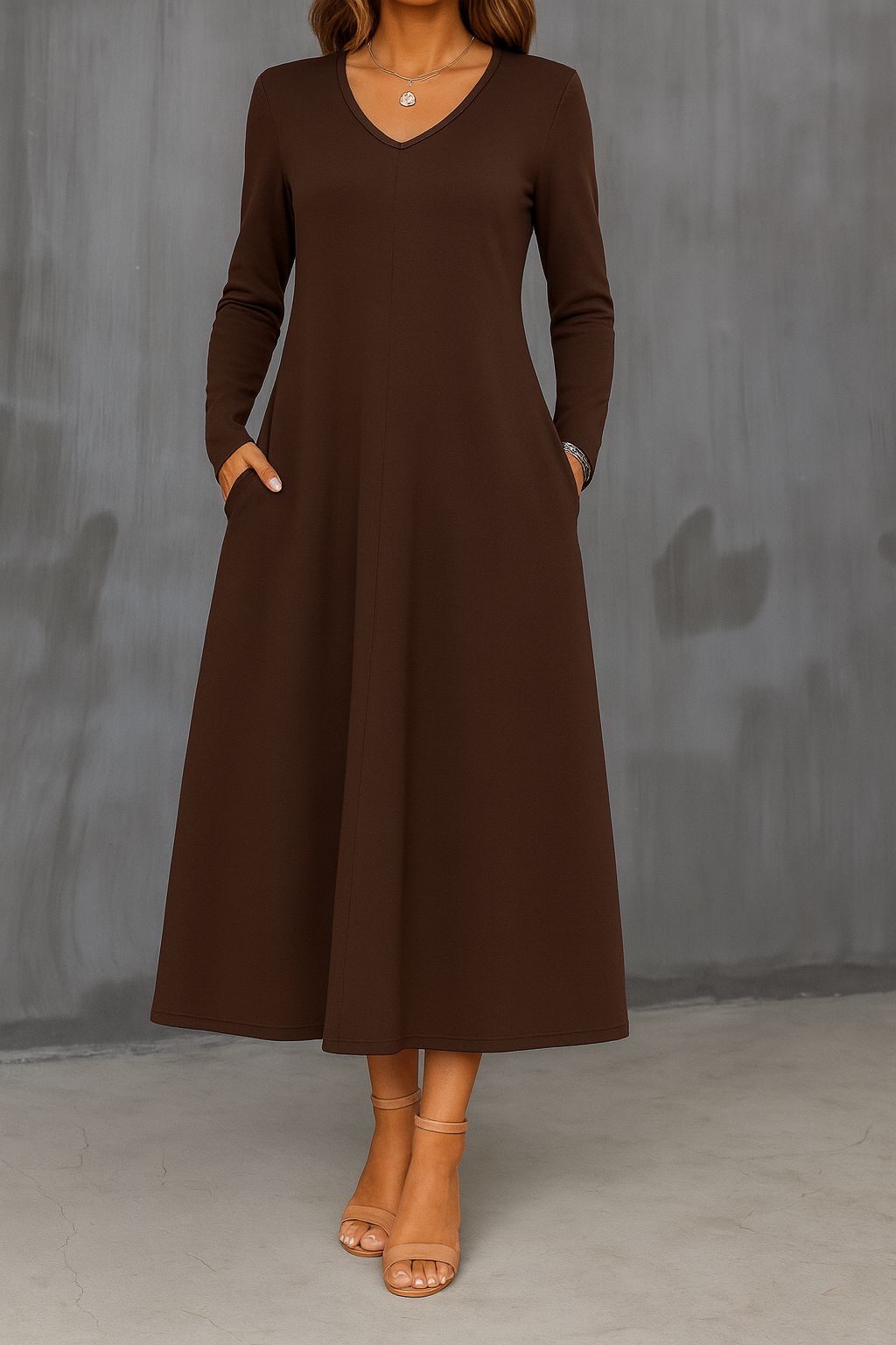 • Questo splendido abito lungo color moro unisce semplicità e raffinatezza in un’unica creazione. Il suo taglio lineare con piega centrale e maniche lunghe esalta la silhouette con naturalezza, mentre il colore caldo e profondo aggiunge un tocco di eleganza senza tempo.