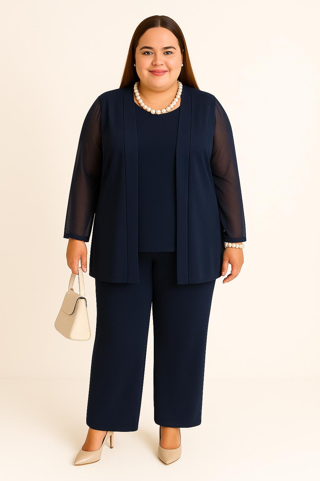 - Elegante completo a tre pezzi con cardigan lungo e maniche in velo, top coordinato e pantalone a gamba dritta. Perfetto per cerimonie ed eventi speciali, unisce raffinatezza e comfort in uno stile senza tempo. Le maniche in velo aggiungono un tocco di leggerezza e femminilità, rendendo il look unico ed esclusivo.