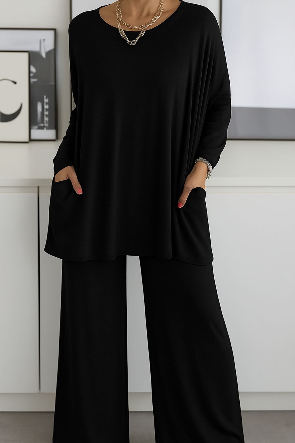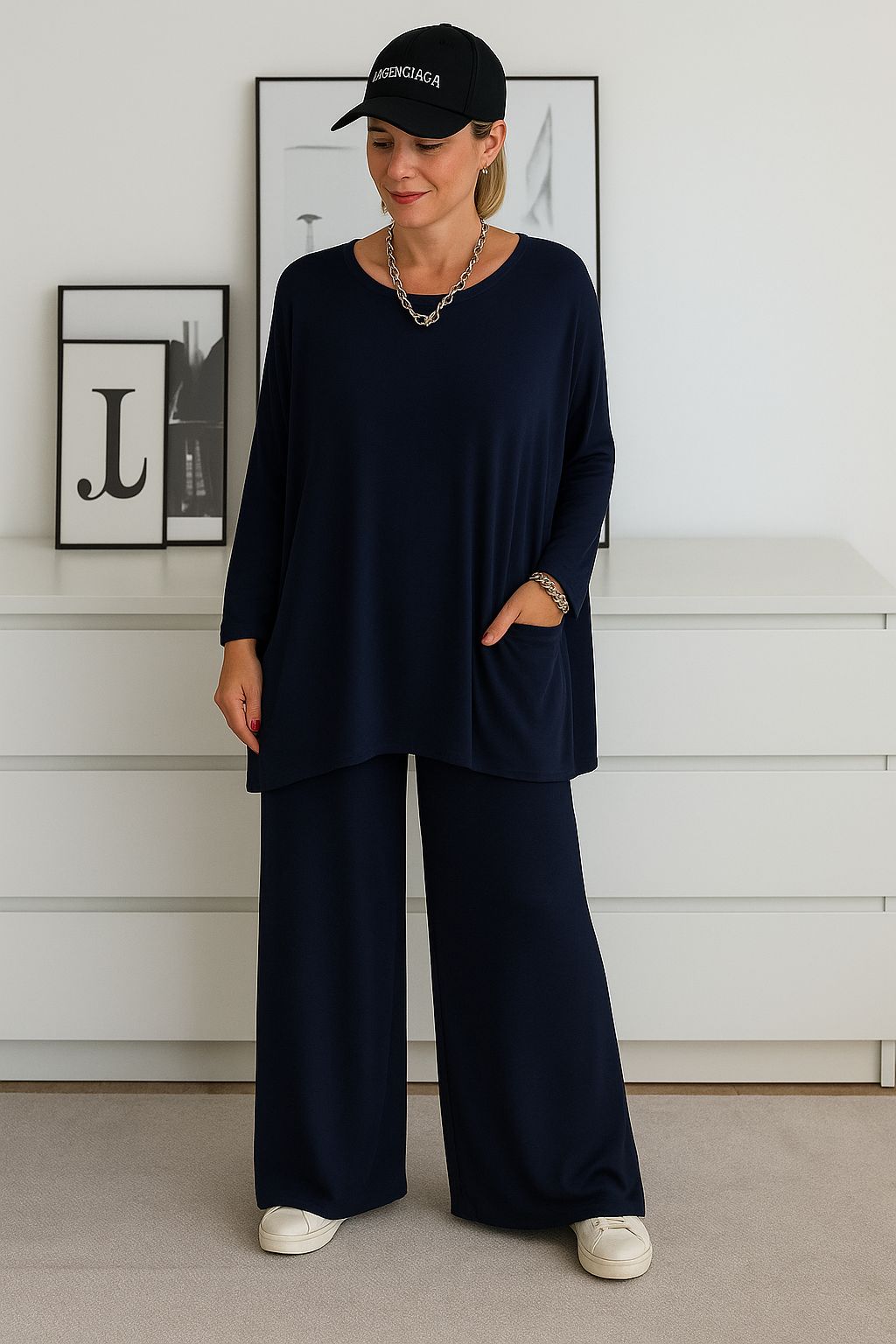 Questo completo dal taglio moderno è l’unione perfetta tra comodità e stile.