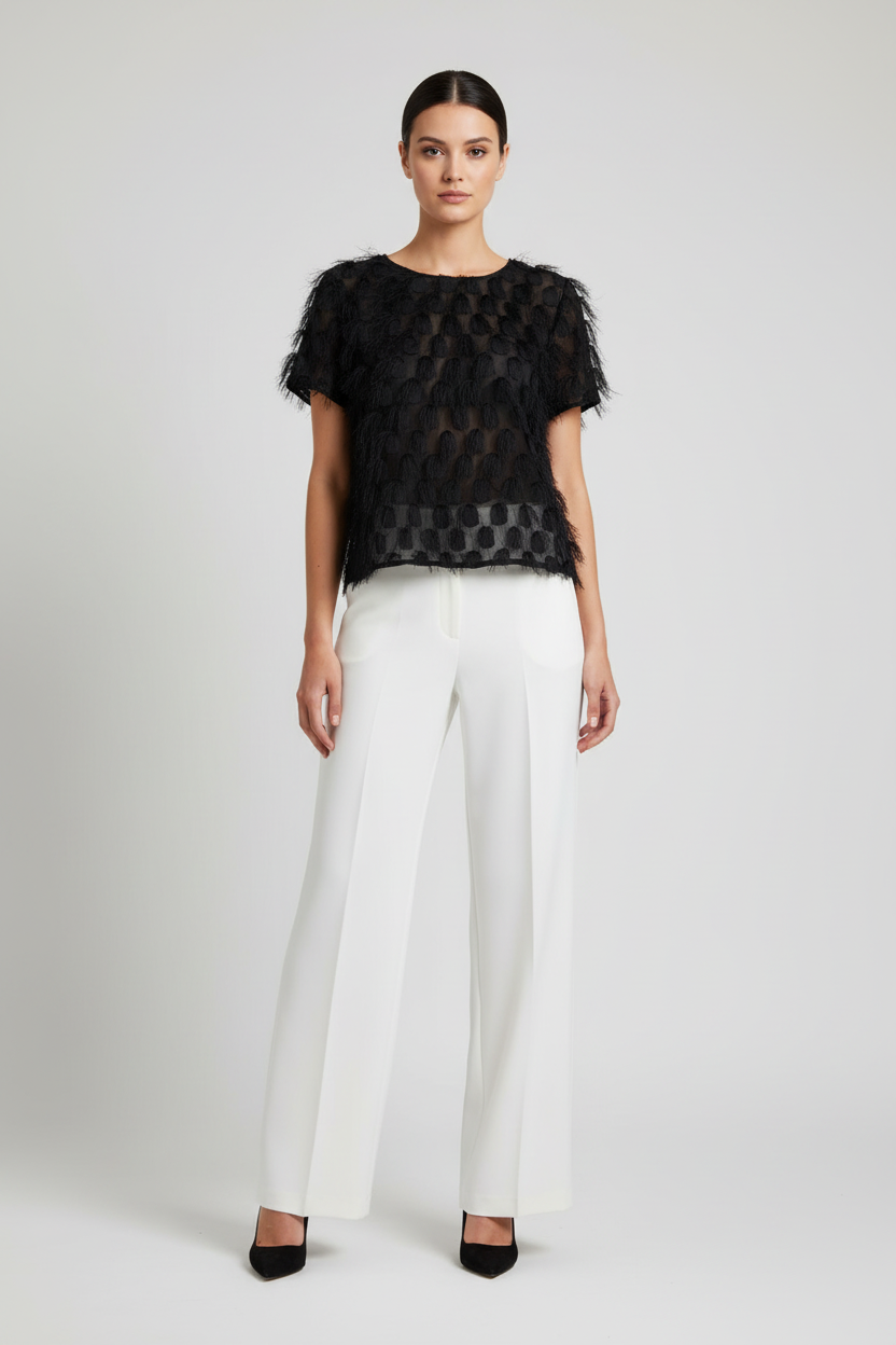 - Dettaglio distintivo: Frange eleganti che aggiungono movimento e personalità a un design pulito, con colore nero facile da abbinare a jeans per un look casual o a pantaloni eleganti per una serata speciale.